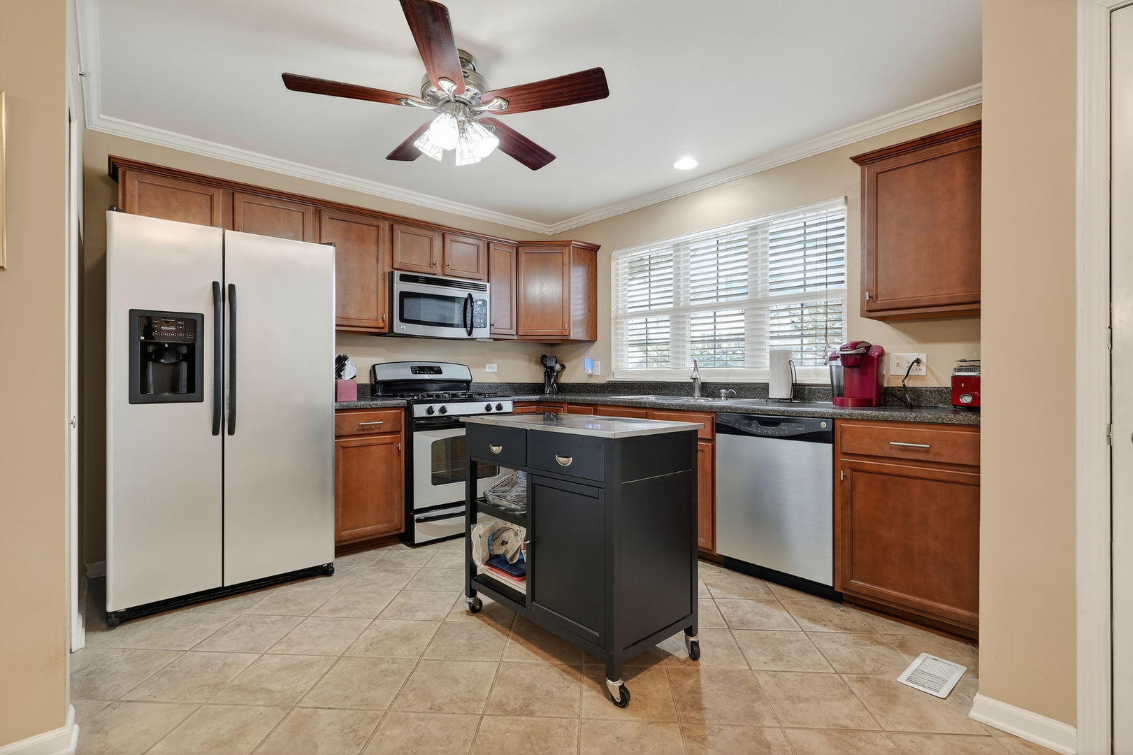 This is it! Rare end-unit in River Mill Crossings. Come see this roomy three bedroom and three full bath town home today. Bright open layout with great natural light. Large kitchen open to dining / living room combo, private balcony with new patio door (being installed soon!) Primary suite includes a walk-in closet and full bath. Lower level offers a family room, bedroom, full bath, and laundry, ideal for guests, office, or related living. Newer mechanicals throughout including HVAC, water heater, washer and dryer, new toilets, updated bathroom faucets, and roof repair in 2025. New carpet and paint in main areas upstairs. Attached two-car garage and maintenance-free living. Close to shopping, restaurants row on Milwaukee, the Wheeling Town Center, Metra train, expressways, the Chicago Executive Airport and more. Don't let this one get away - move right in, priced to sell, selling 'as is'.